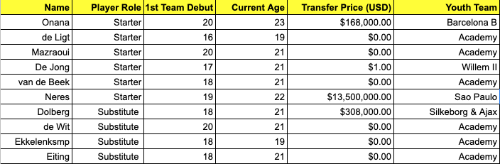 For less than half a million dollars combined these are the current players that Ajax either developed in their academy or bought at a young age: